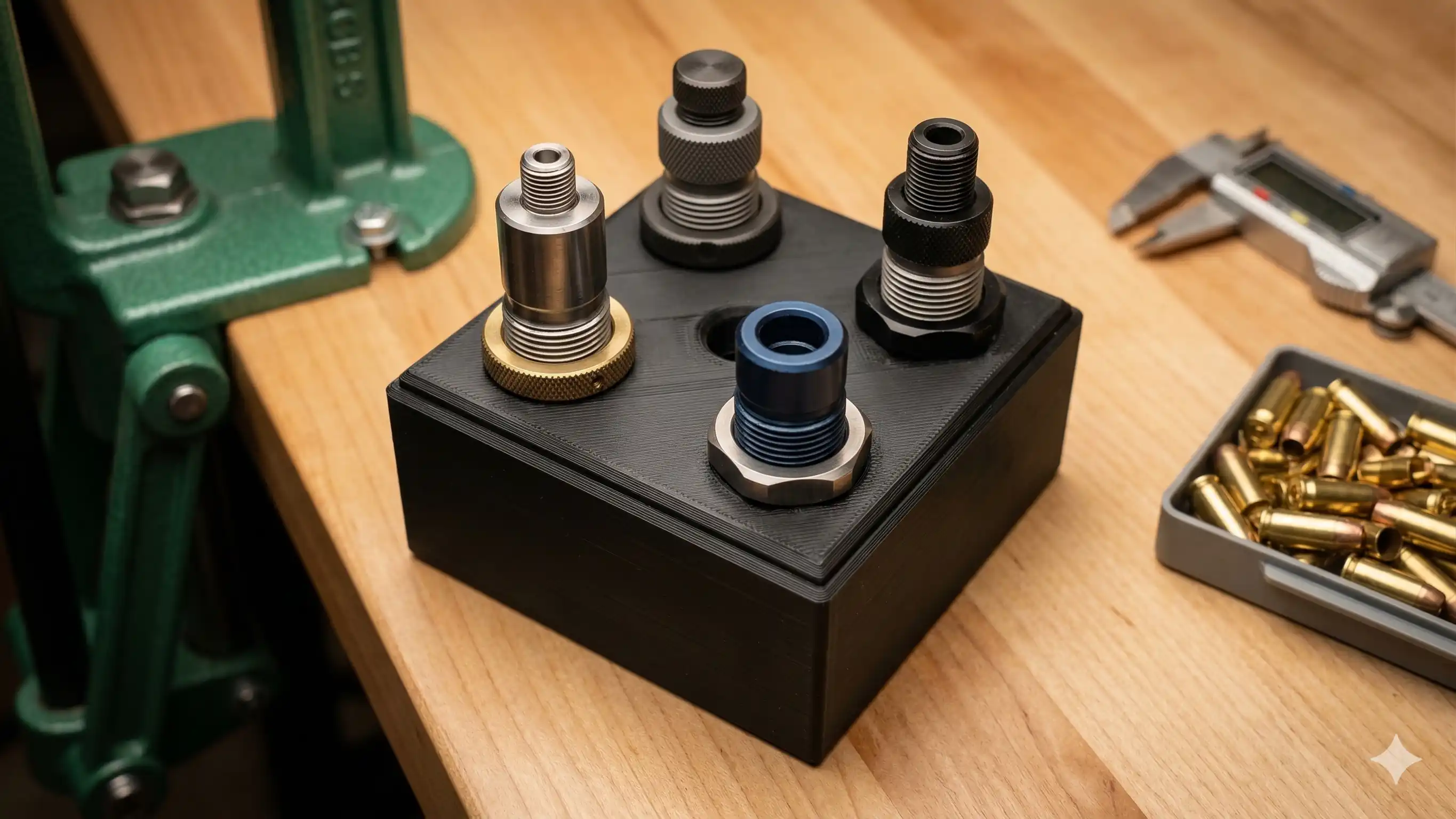 Compatible avec les dies de toutes les grandes marques : LEE, RCBS, Hornady, Redding, Lyman… Pas besoin de Breech Lock bushing — le filetage standard suffit.