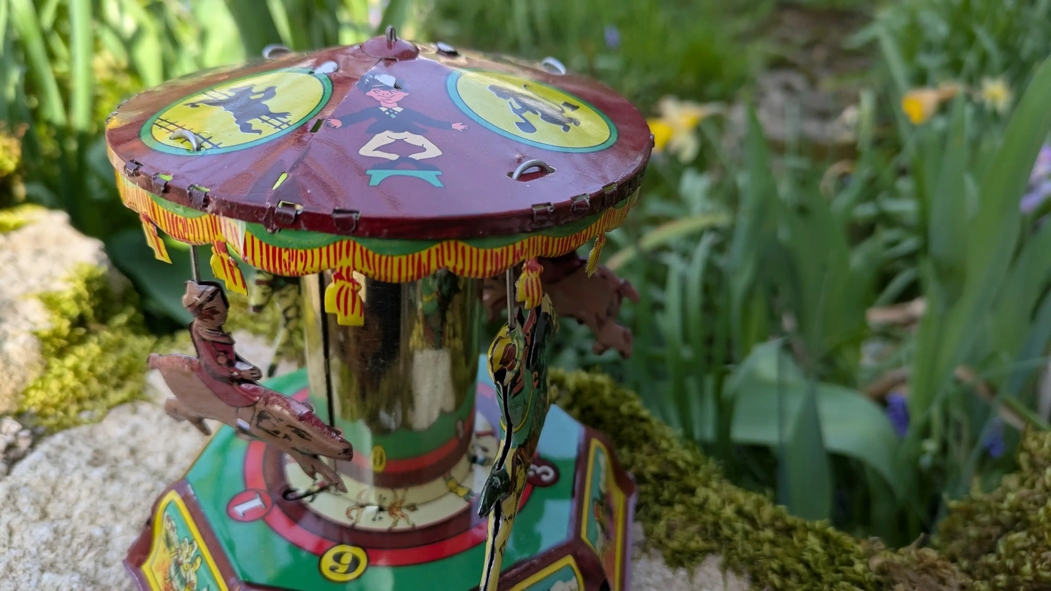Carrousel mécanique en tôle lithographiée — réédition Payá, Espagne.
